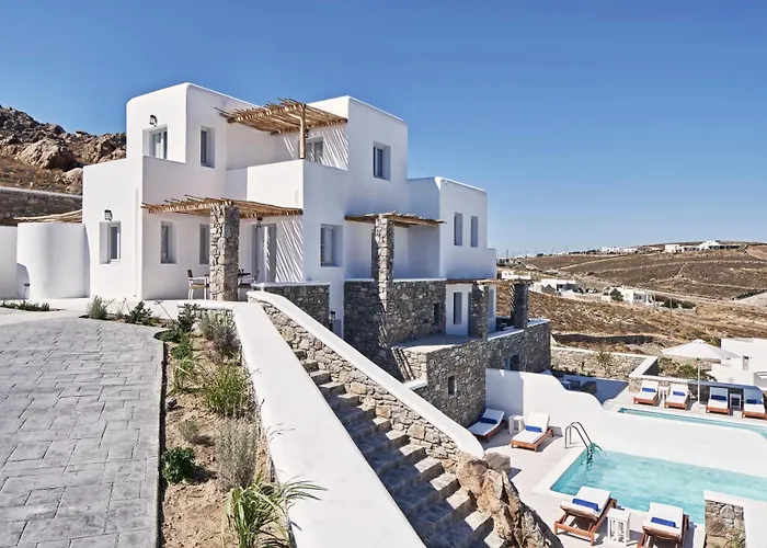 Bénéficiant d'un emplacement à 3 km de la Plage de Kalafatis, Katikies Villas Mykonos Elia dispose d'une terrasse avec vue sur la mer. Offrant une vue sur la piscine en plein air ouverte en saison, la villa vous invite à visiter le musée archéologique de Mykonos, situé à 15 minutes en voiture.